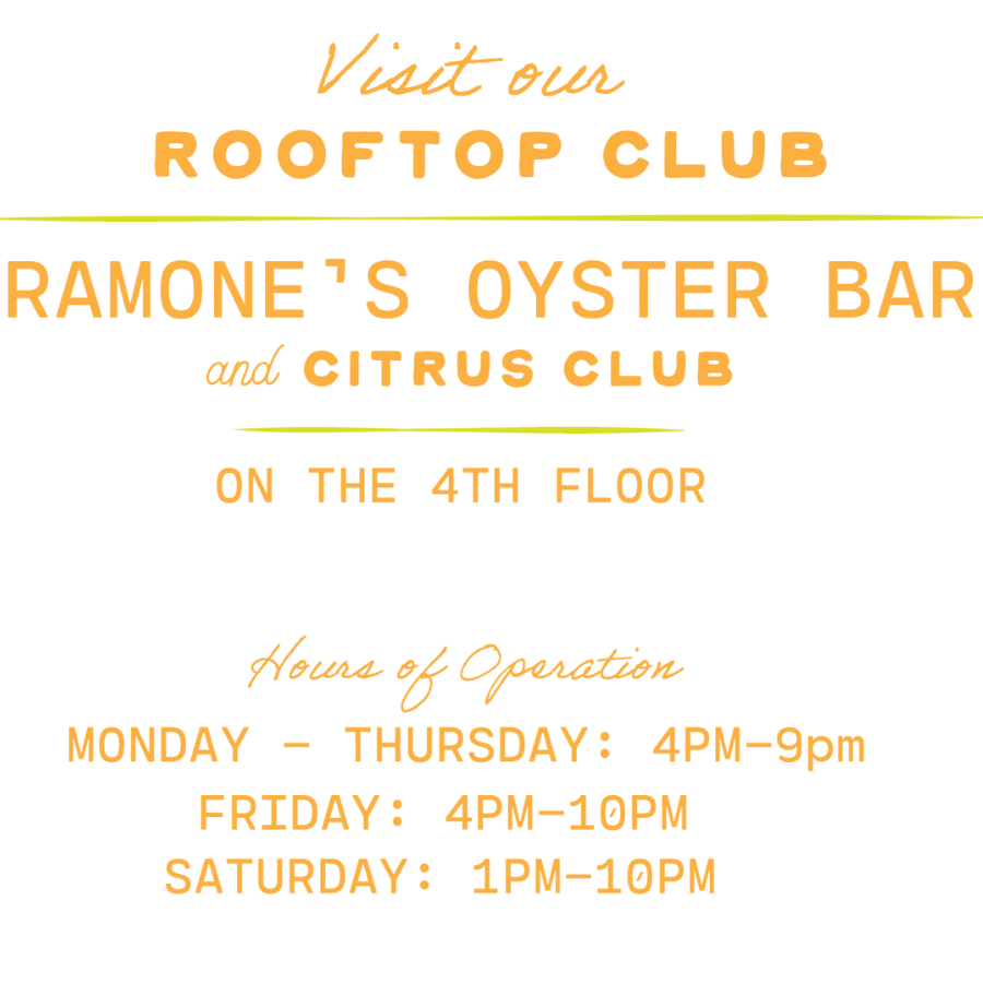 Ramone’s Oyster Bar & Citrus Club is Nashville’s best rooftop oyster + citrus cocktail bar, perched above Mercado by Butchertown in Wedgewood-Houston.